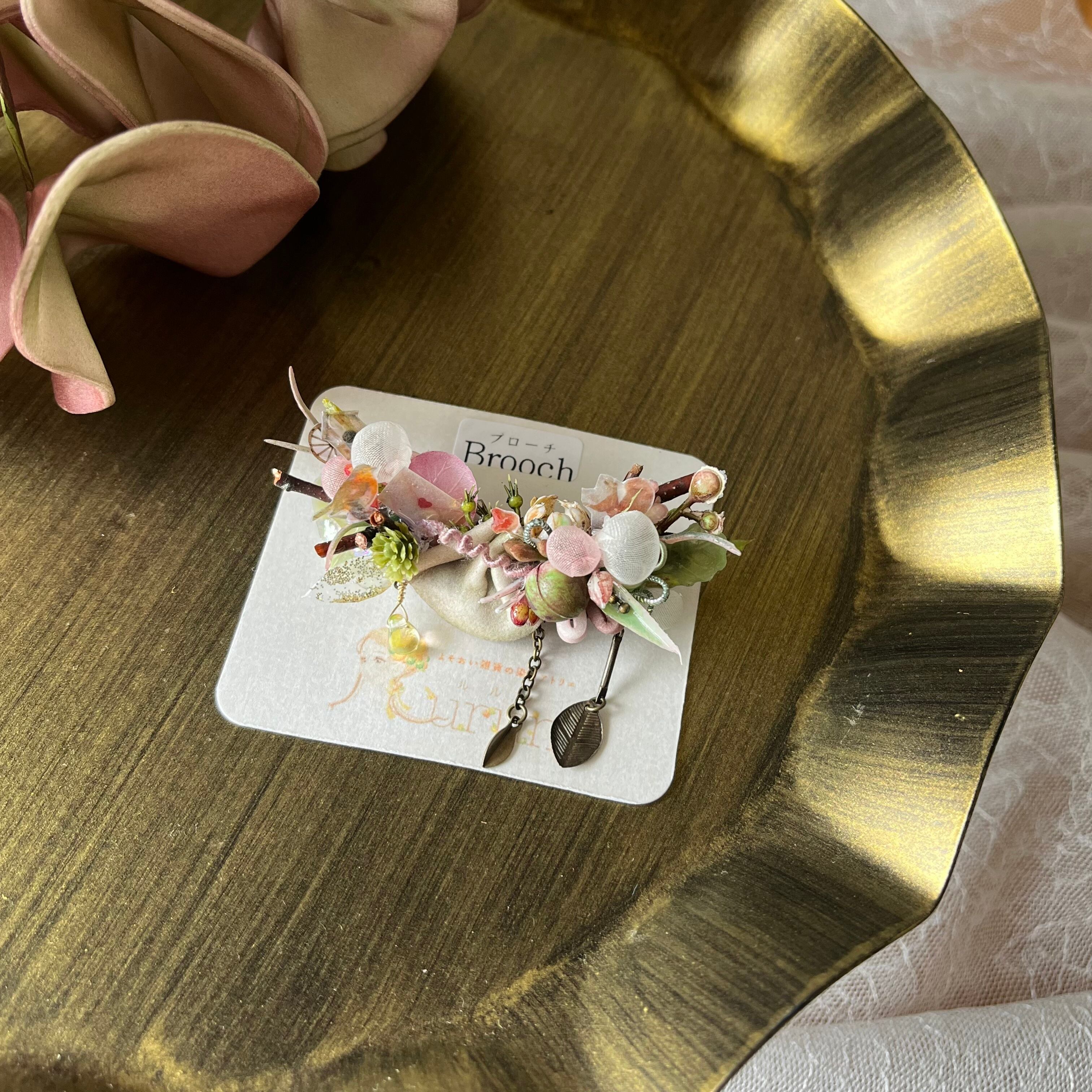 木の実や貝殻、お花など様々な素材を組み合わせた染めアクセサリーです。