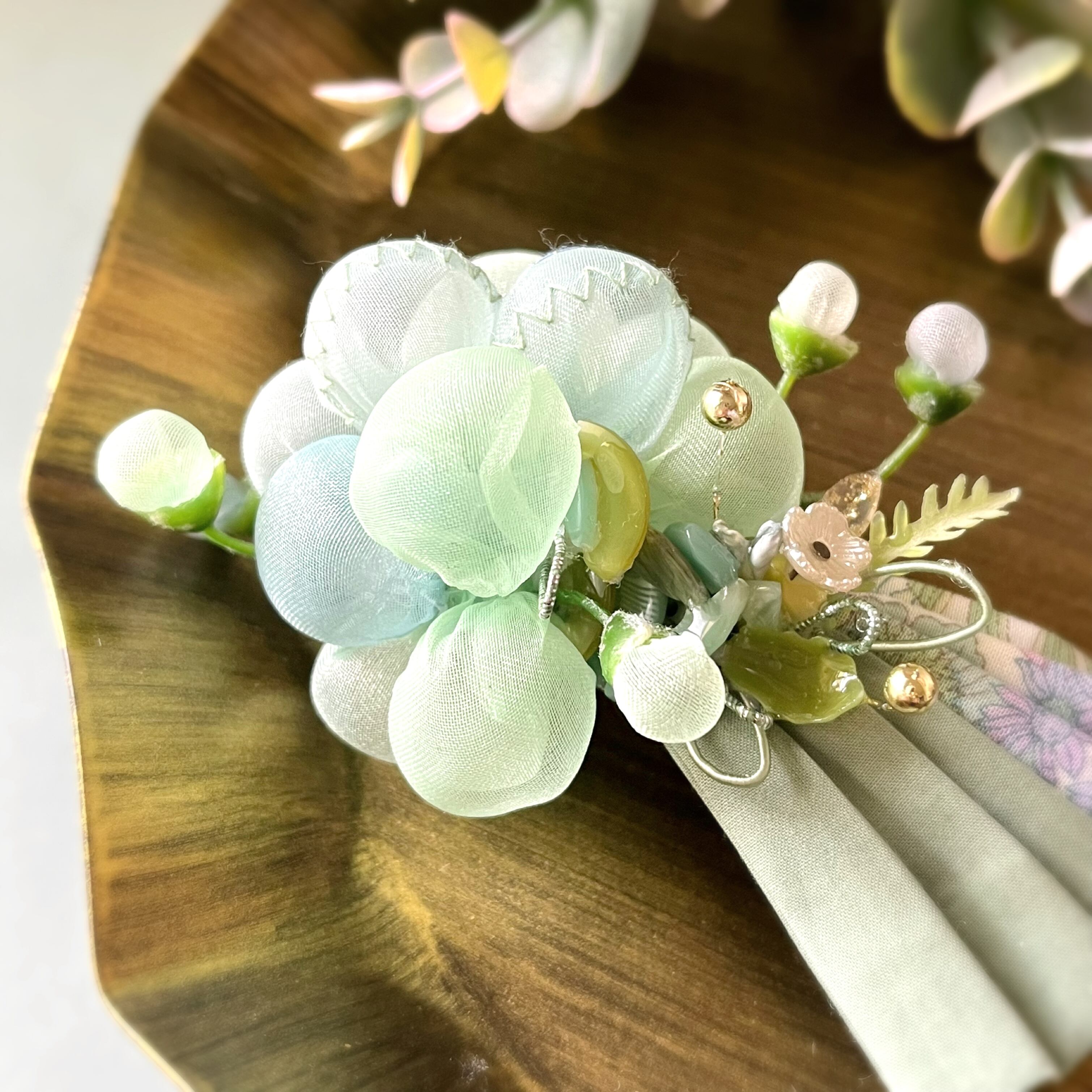 ⚫︎10gも満たない軽さが特徴で、裏にはクリップとブローチピンが付いているので、髪留めとしてもブローチとしても、2wayでお楽しみ頂けます。