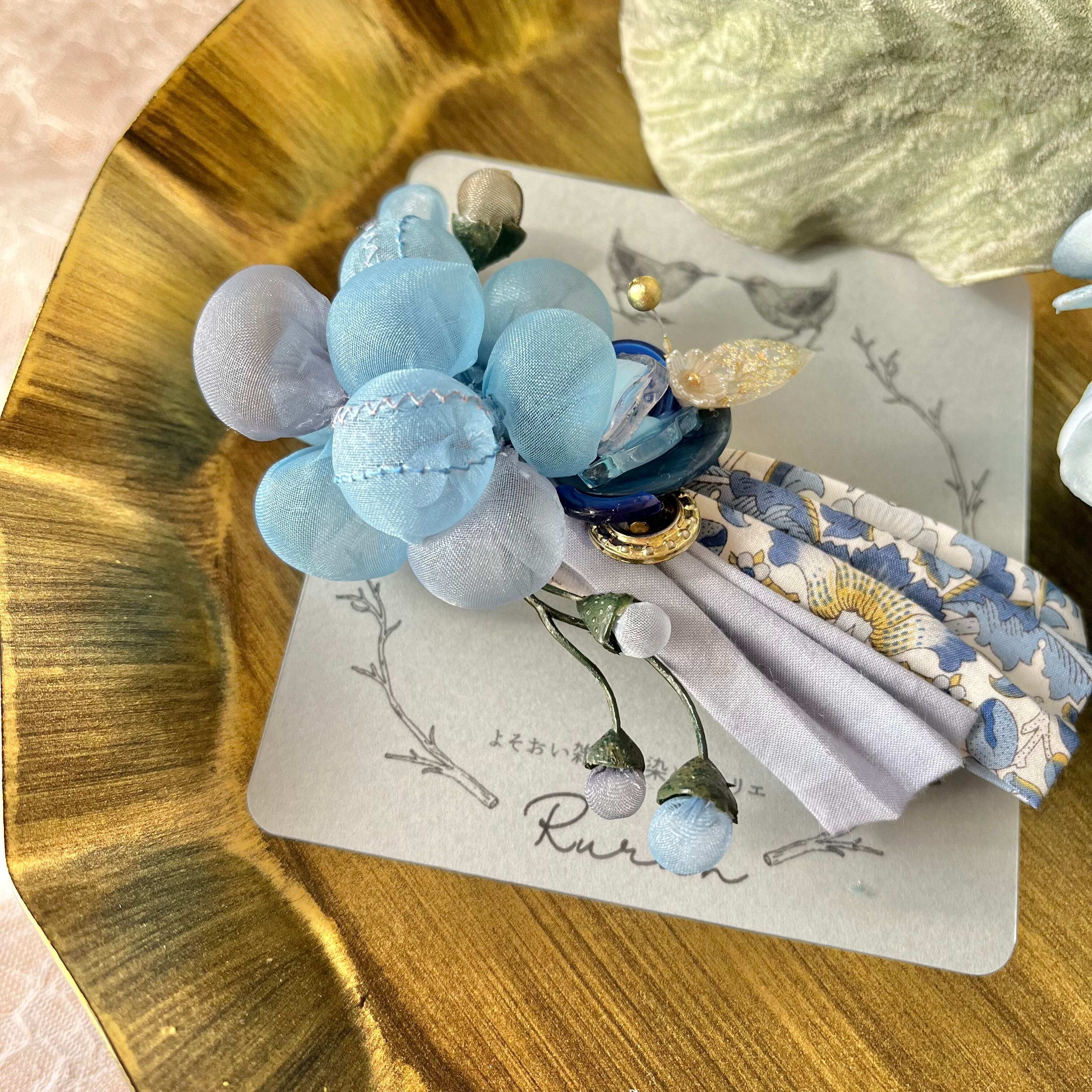 ⚫︎10gも満たない軽さが特徴で、裏にはクリップとブローチピンが付いているので、髪留めとしてもブローチとしても、2wayでお楽しみ頂けます。