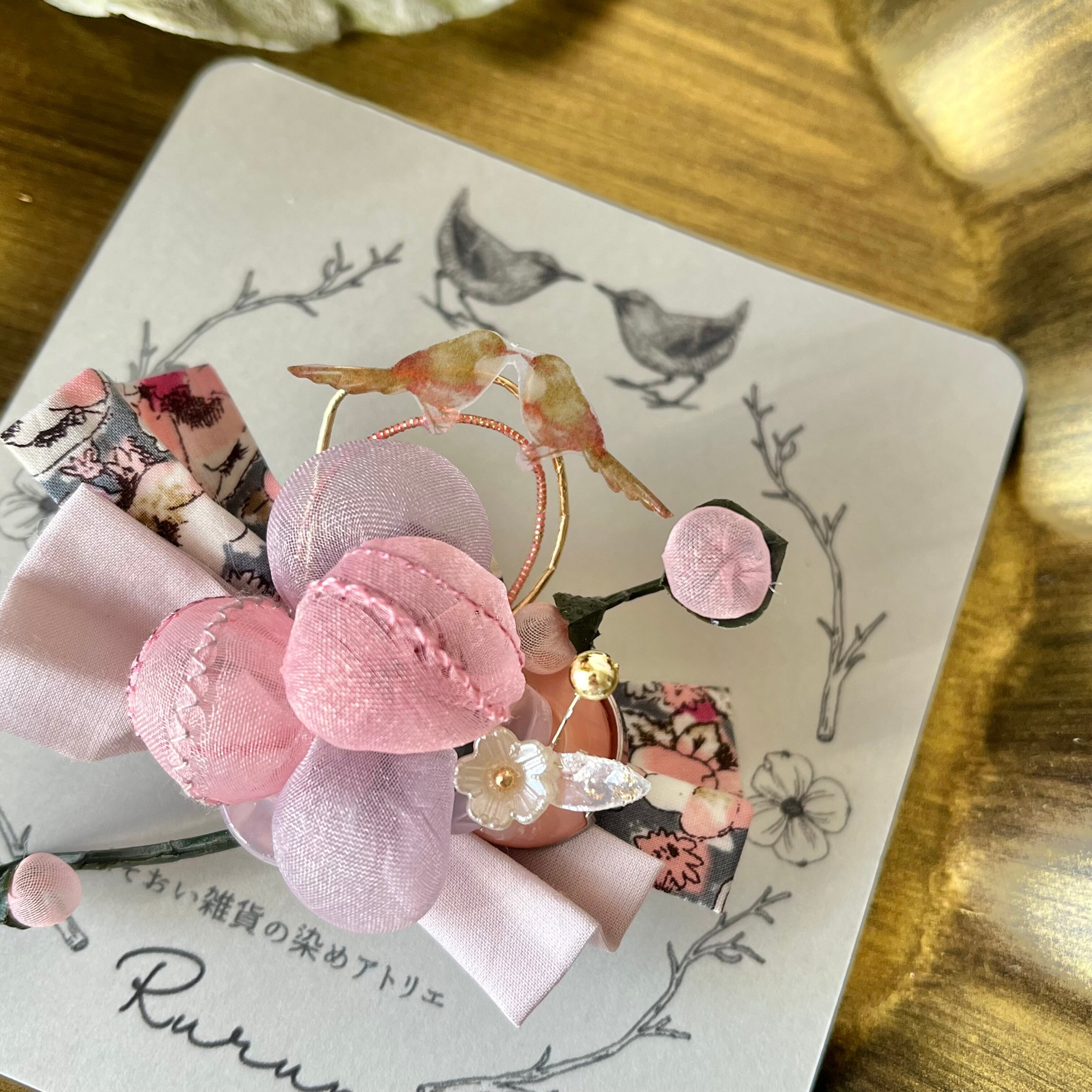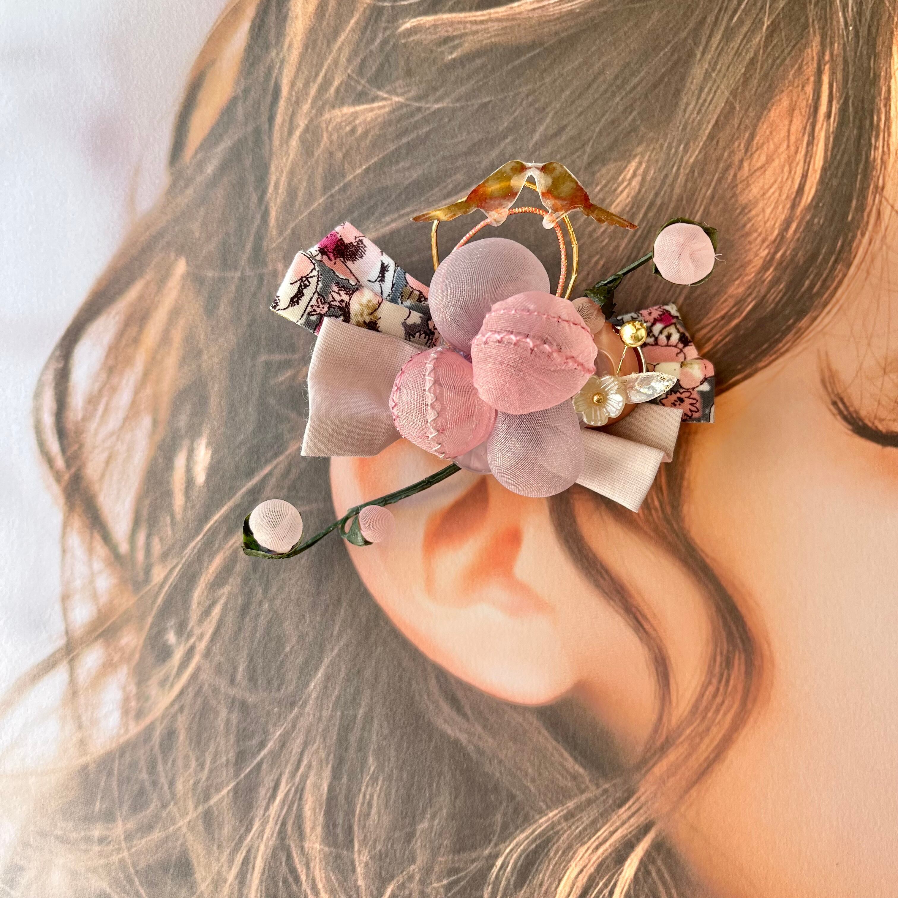 ⚫︎10gも満たない軽さが特徴で、裏にはクリップとブローチピンが付いているので、髪留めとしてもブローチとしても、2wayでお楽しみ頂けます。